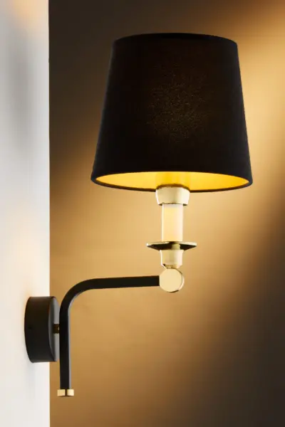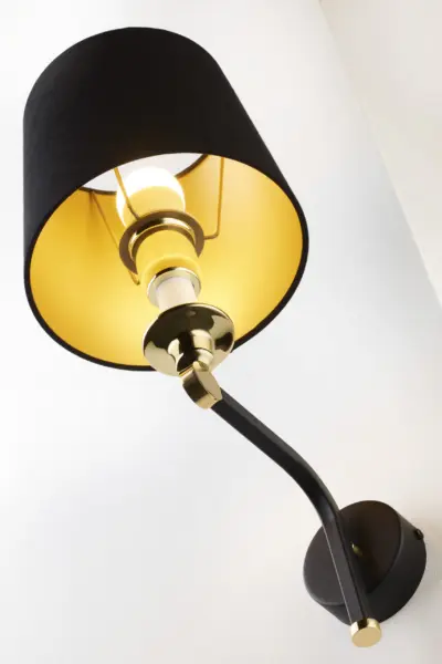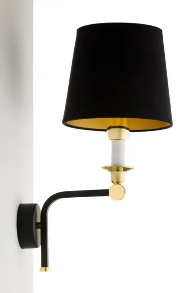 Метален аплик ABANDO Jupiter JU2123 с текстилен абажур в златист цвят, подходящ за интериорно осветление с E27 крушка.Крушката не е включена в комплекта