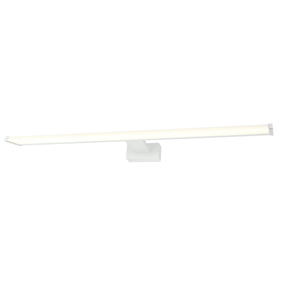 Стилен LED аплик Miore 10W 60cm в бял цвят – модерен и практичен избор за баня, огледала и коридори. Предлага мощност 10W, светлинен поток 1100lm и неутрална 4000K светлина за комфортно, равномерно осветление. С ъгъл на светене 120° и степен на защита IP44, моделът е подходящ за влажни помещения. Лек, издръжлив и лесен за монтаж
