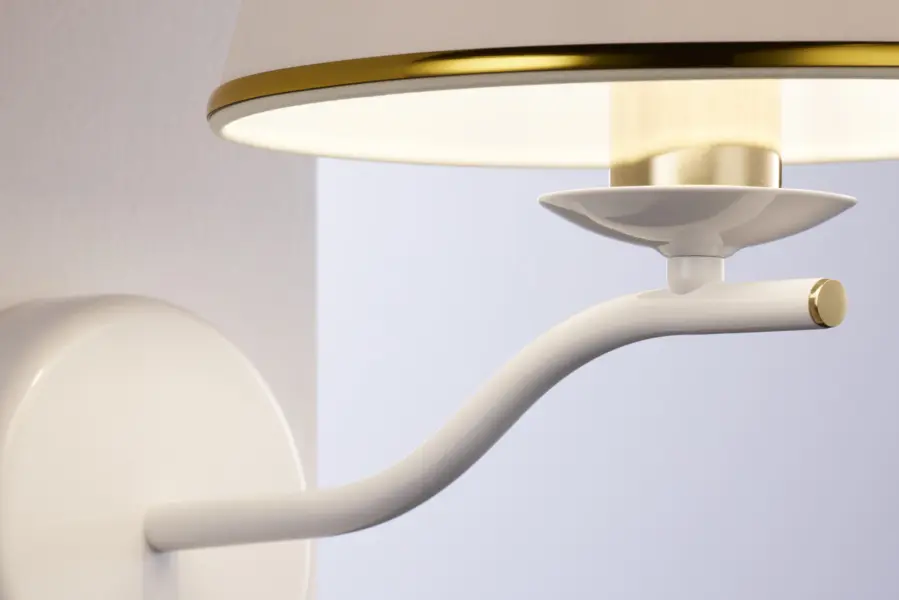 Бялата боя на аплика създава светъл и свеж вид, идеален за вграждане към различни стилове интериор – от модерни до класически. Класическият дизайн с метални и месингови елементи позволява лесно съчетание с други елементи в стаята, придавайки стил и хармония.