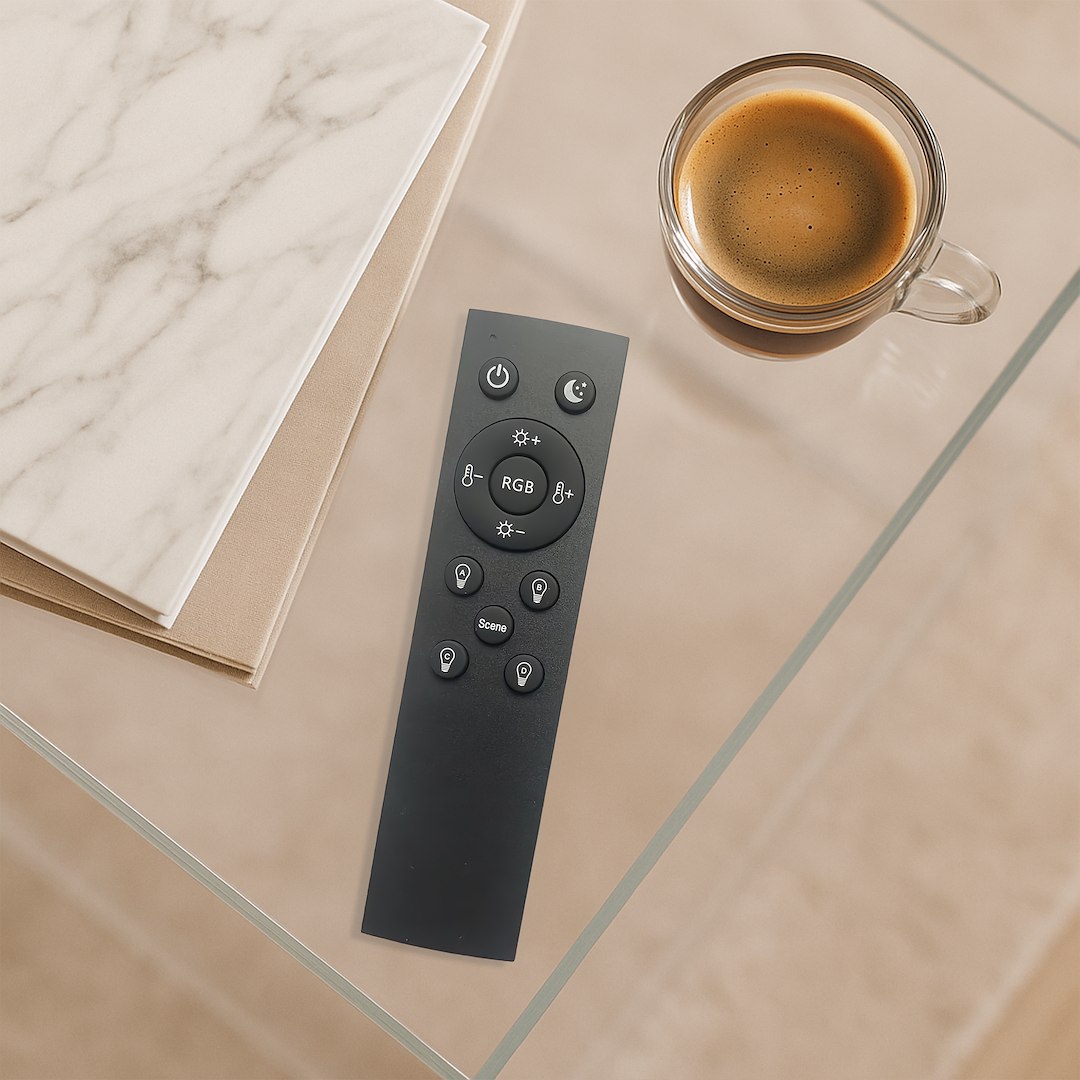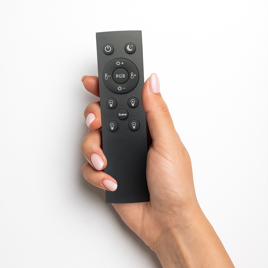 Дистанционното управление за SLIM Magnetic Track ML2233 е модерно и интуитивно устройство за контрол на всички съвместими модулни осветители от системата. То позволява включване и изключване на светлината, регулиране на силата ѝ, промяна на цветната температура между 3000K и 6000K, както и управление на няколко осветителни зони едновременно.