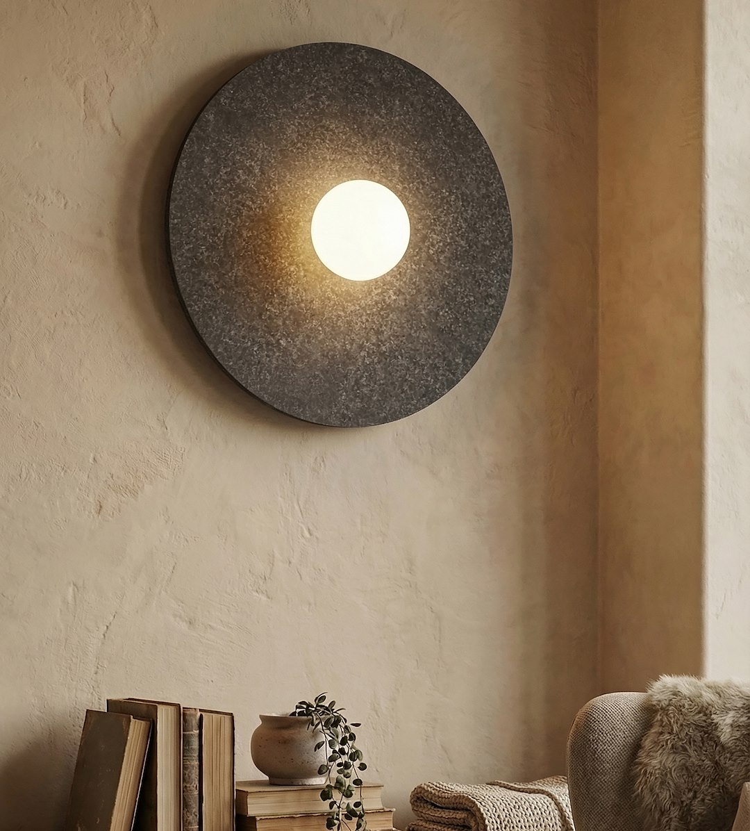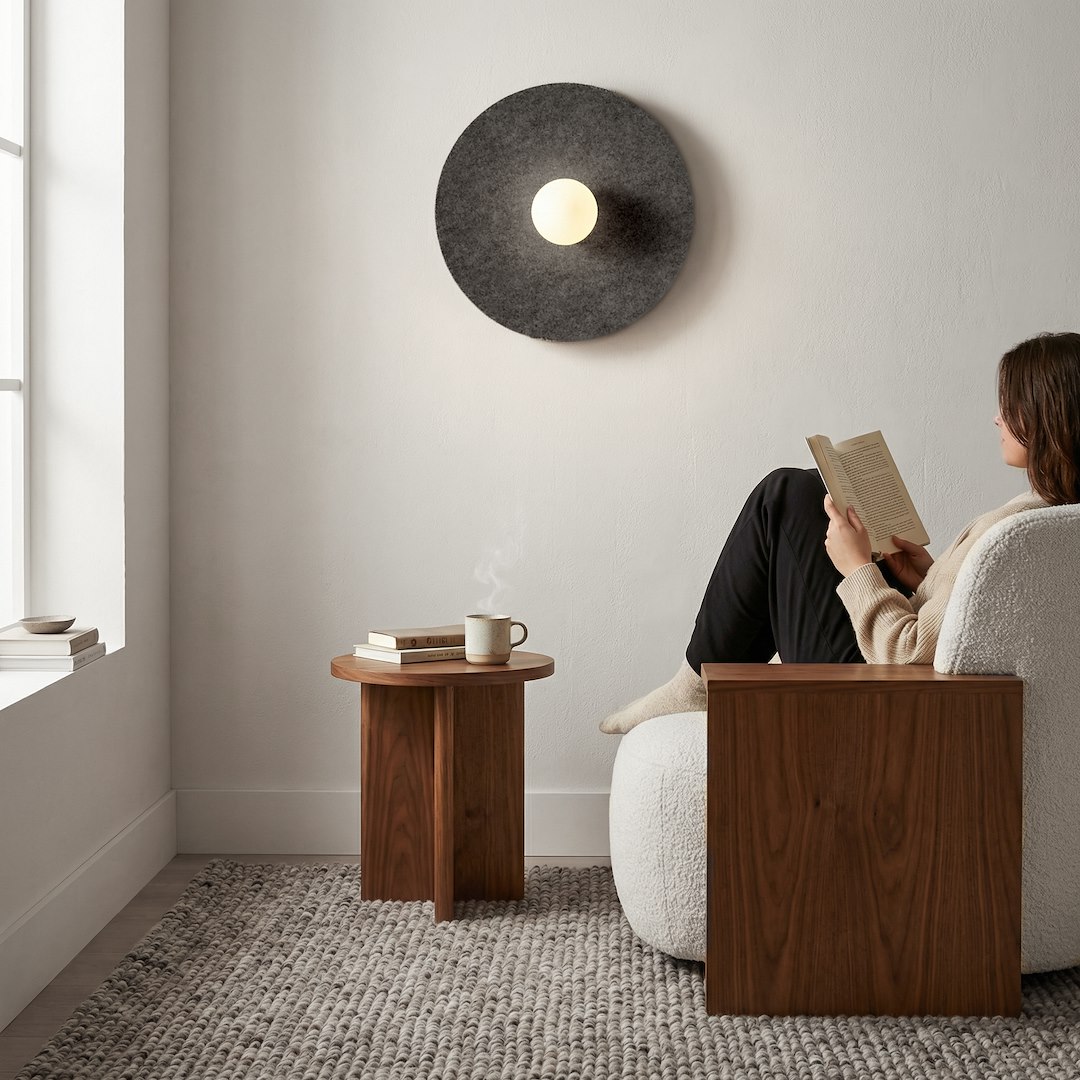 Апликът EMIBIG CALMA BLACK L е елегантно осветително тяло, създадено за съвременни интериори, в които се търси комбинация между уют, дизайн и функционалност. Моделът е изработен от здрава метална конструкция и декоративен елемент от висококачествен PET филц в черен цвят, който придава изразителна визия и стилен характер на помещението. Освен декоративен ефект, филцовият материал допринася за по-комфортна атмосфера, като спомага за намаляване на ехото и подобряване на акустиката. Лампата е с диаметър 40 см и дълбочина 14 см, което я прави отличен избор за различни пространства. Оборудвана е с една фасунга G9 и е подходяща за LED крушка с максимална мощност до 8W, като създава приятно, меко и равномерно осветление. Черната цветова визия позволява лесно съчетаване с модерни мебели и интериорни решения, а дизайнът я прави подходяща за минималистичен, индустриален и съвременен стил. Апликът е отличен избор за спалня до леглото, коридор, хол, хотелски стаи, рецепции или офис пространства. Моделът е произведен в Полша и носи характерното качество на марката EMIBIG.