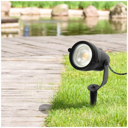 Градинският спот BLAKE UNO KOBI е създаден за надеждно и насочено външно осветление. Подходящ е за осветяване на растения, храсти, фасади и архитектурни детайли. Корпусът от алуминий и стъклено покритие осигуряват висока устойчивост при външни условия, а степента на защита IP65 гарантира защита от прах и водни струи.