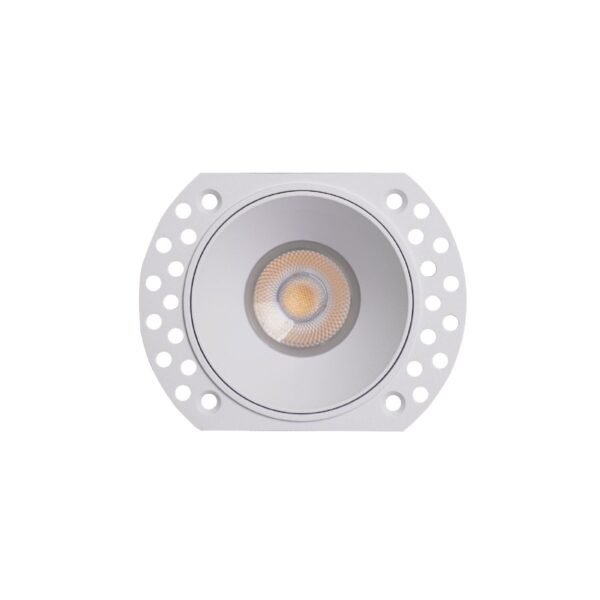 Моделът използва фасунга GU5.3 и е съвместим с LED крушки PAR16 до 12W. Благодарение на IP65 защитата е подходящ за бани, СПА зони и външни покрити пространства. Trimless дизайнът позволява почти невидим монтаж и чиста визия на тавана