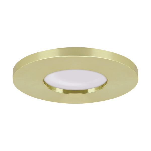 Вградена таванна луничка в златист цвят, подходяща за бани и помещения с висока влажност (IP44/20). Съвместима с LED крушки GU10 до 35W. Изработена от алуминиев отливък и стъкло.