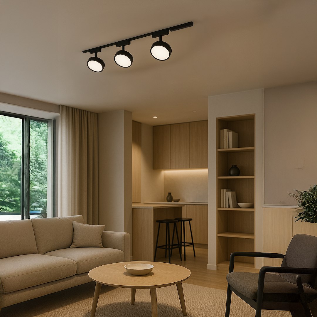 Широкият ъгъл на светене от 150° осигурява равномерно и комфортно осветяване на помещението. Черният корпус и минималистичният кръгъл дизайн го правят отличен избор за дневни, кухни, офиси, хотели, магазини и съвременни търговски пространства.