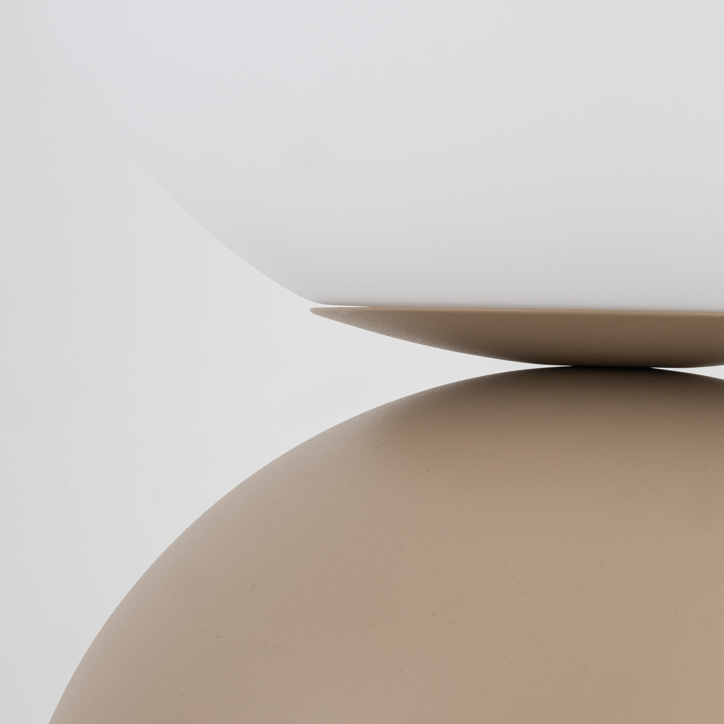 Компактна нощна лампа с изчистен сферичен дизайн и мека, балансирана визия. Моделът комбинира основа в цвят сабия и бял стъклен абажур, който осигурява равномерно и приятно разсейване на светлината.