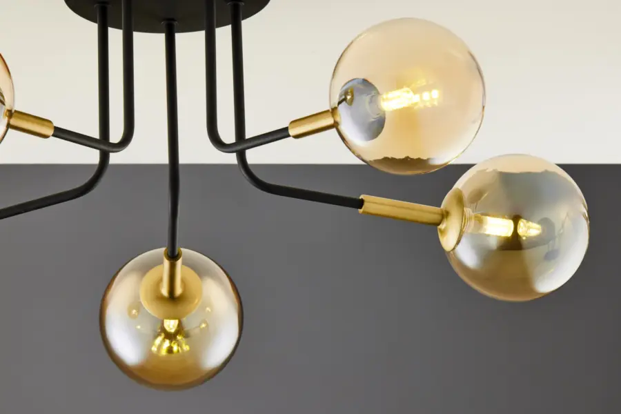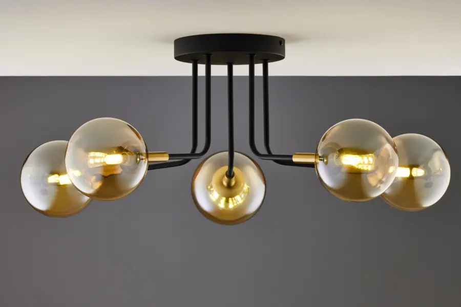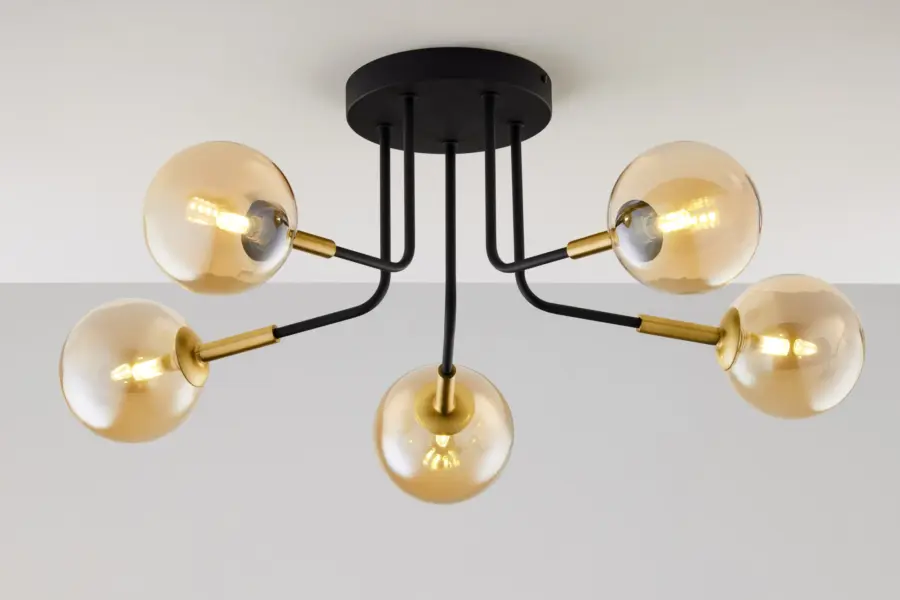 Плафонът работи с 5 крушки с база G9 и максимална мощност до 14W, което позволява използването на енергоспестяващи и LED източници на светлина. Това осигурява ефективност и дълъг живот на осветлението.
