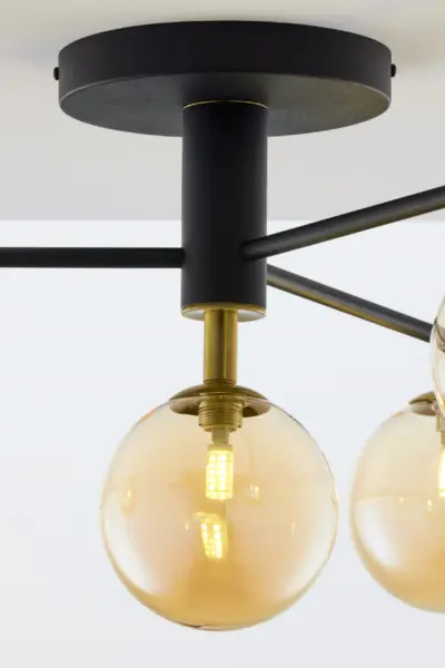 Изработен от висококачествен метал и стъкло, плафонът има здрав корпус, който гарантира дълъг живот и устойчивост на външни влияния. Стъкленият абажур добавя елегантност и позволява равномерно разпределение на светлината в помещението.