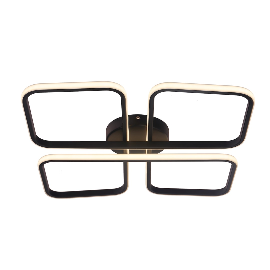 Плафонът HIDALGO от MILAGRO съчетава модерен дизайн и ефективно LED осветление. Лампата е изградена от черна метална конструкция с четири геометрични светещи елемента, които създават равномерно и приятно осветление.