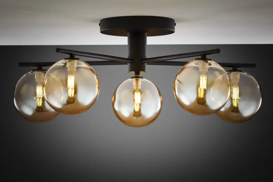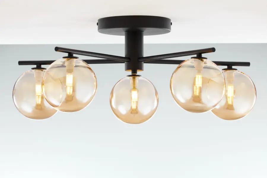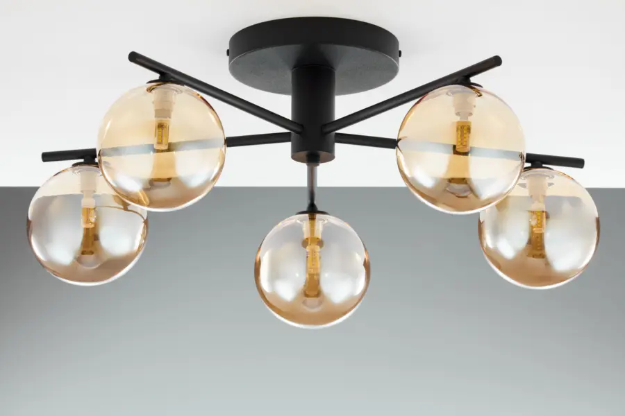Плафонът е оборудван с 5 гнезда G9 с максимална мощност 14W, което позволява използването на икономични и ефективни крушки. Такъв тип осветление осигурява равномерно и комфортно светлинно разпределение, подходящо за желания уют във вашия дом или офис.