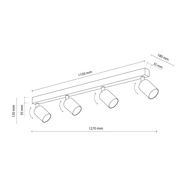 Използването на четири източника с тип фасунга GU10 позволява гъвкаво регулиране на осветлението, като максималната мощност до 10W на LED осигурява икономично и енергоспестяващо решение. Размерите 180 мм дължина, 1230 мм ширина и 150 мм височина я правят отличен избор за разнообразни интериорни пространства.