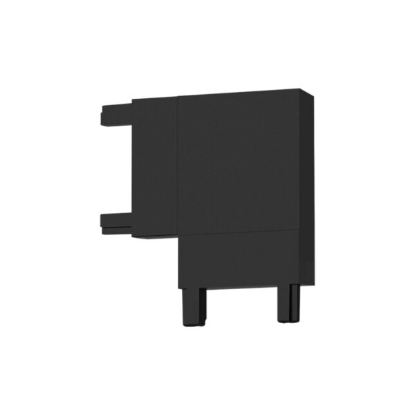 Компактен черен L-образен конектор за магнитна шина SLIM, изработен от алуминий. Служи за промяна на посоката на шината под ъгъл 90° и е съвместим с всички елементи от системата. Подходящ за жилищни и търговски пространства.