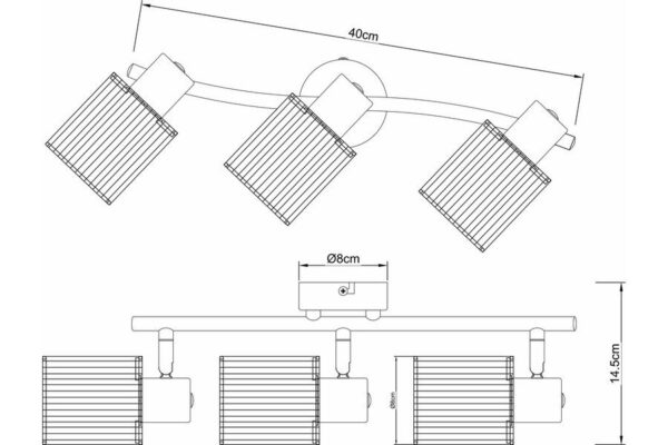 Спотът работи с три крушки E14 с максимална мощност 3x40W и позволява използване на LED крушки по избор. Регулируемите глави дават възможност за насочване на светлината според нуждите на помещението.