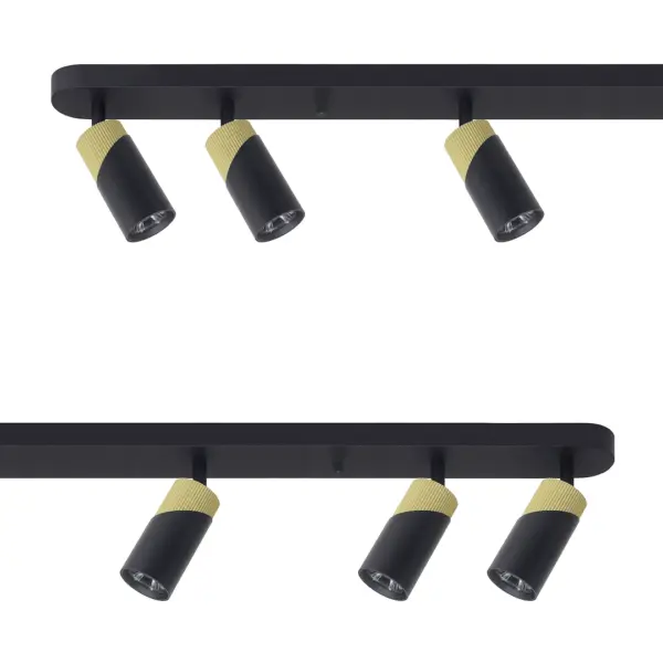 Елегантна спот лампа NEO в черно и златно с 6 гнезда GU10, изработена от алуминий, идеална за модерно интериорно осветление.