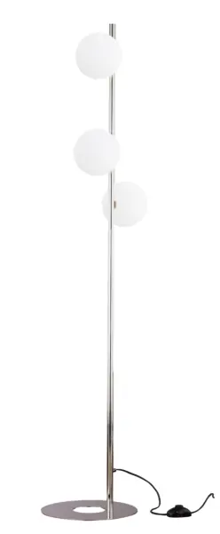 Стояща лампа FEME Jupiter JU1939 с хромен цвят, изработена от стомана и стъкло, с 3xG9 светлоизточника за модерно интериорно осветление.Крушката не е включена в комплекта