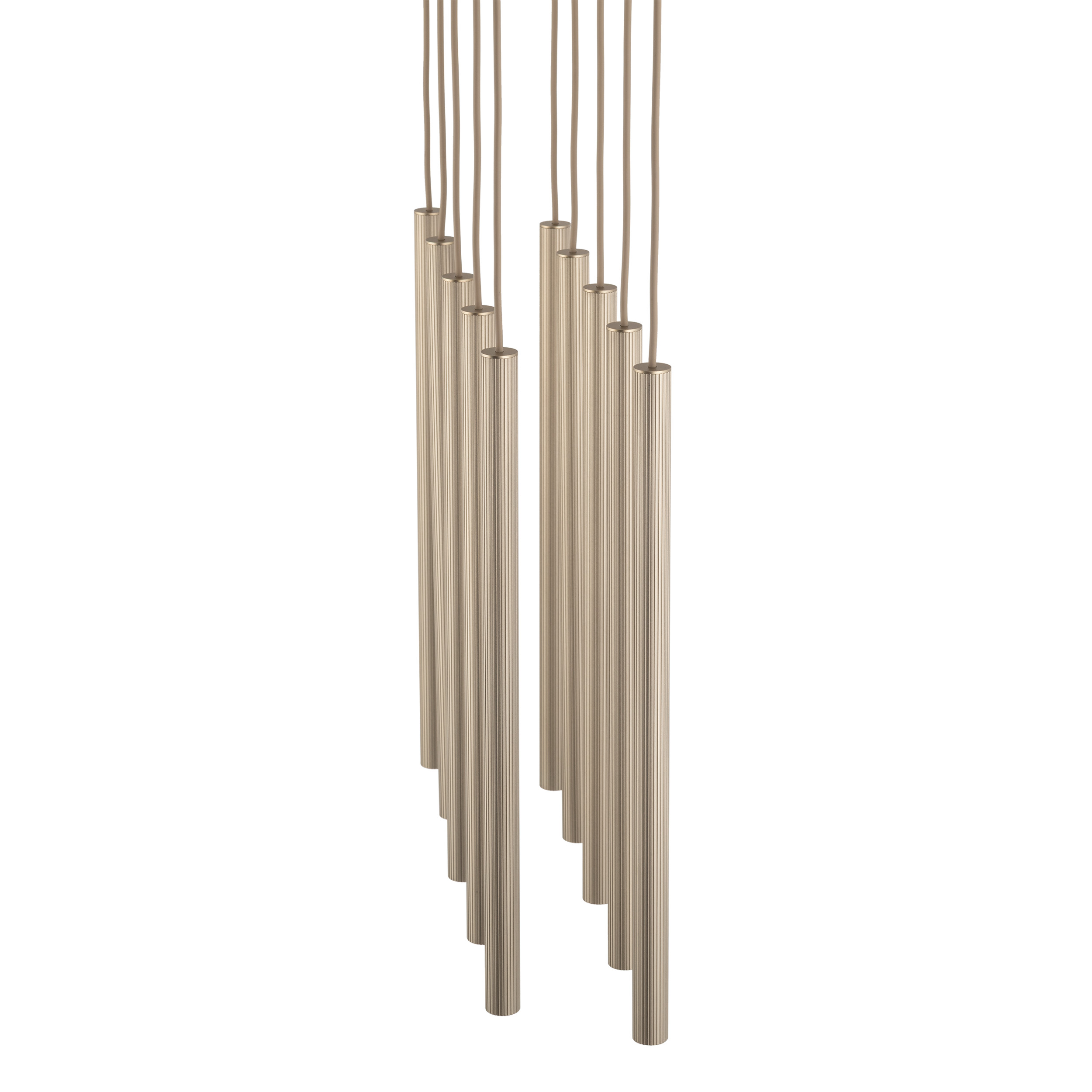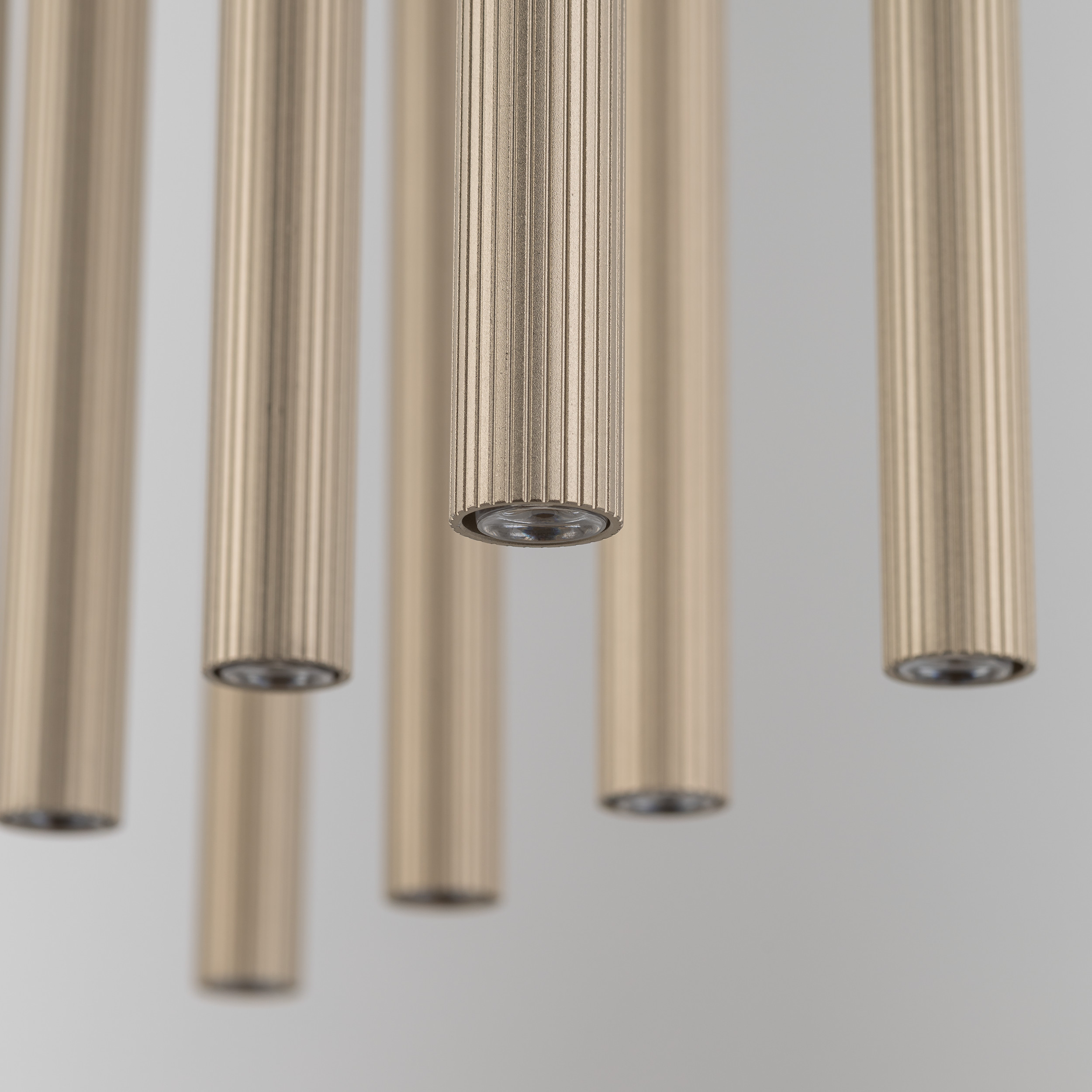 Елегантна дизайнерска висяща лампа с 10 светлоизточника G9 и стилно покритие в цвят champagne. Подходяща за модерни и луксозни интериори.