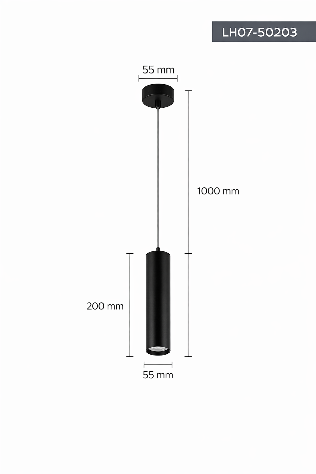 Висящата лампа LH07-50203 LAMBARIO е стилно осветително тяло с цилиндрична форма и изчистен минималистичен дизайн. Изработена е от алуминий в черен цвят и е предназначена за вътрешен монтаж.