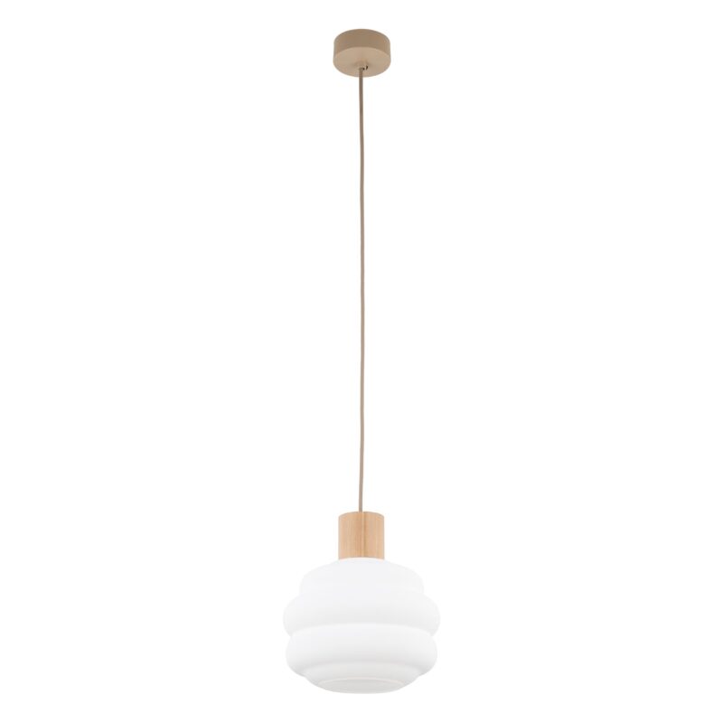 Висящата лампа MELIA съчетава естествено дърво и метал в класически дизайн, който се вписва отлично както в модерни, така и в по-традиционни интериори. Белият абажур създава мека и приятна светлина, а конструкцията позволява използването на LED крушка до 15W.