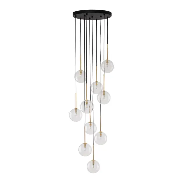 Черният и златният цвят създават впечатляващ контраст и стил, което прави лампата подходяща за пространства с изискан и модерен характер. Металните и стъклени елементи допринасят за луксозното и завършено излъчване.