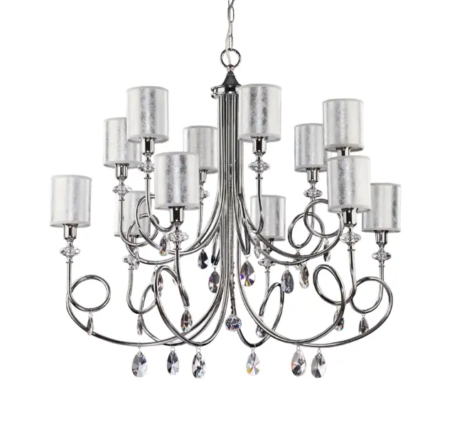 Висящо осветление DELFINA Jupiter JU1596 в хром и текстил с 12xE14 крушки, за стилно и функционално интериорно осветление.Крушката не е включена в комплекта