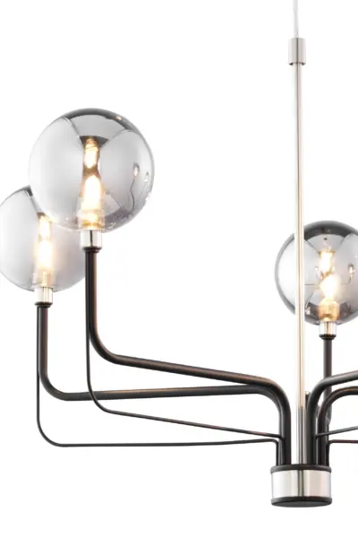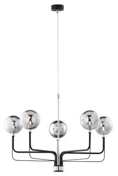Висящо осветление ERIS Jupiter JU1888 с черен цвят, изработено от стомана и стъкло, с 5xG9 лампи за стилен и функционален интериор.Крушката не е включена в комплекта