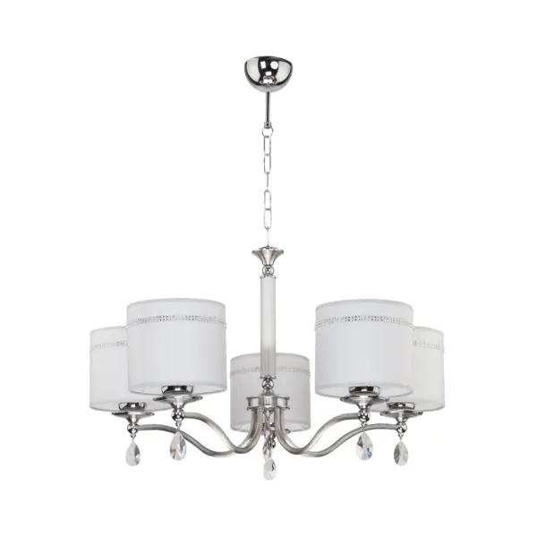 Висящо осветление JULIA II Jupiter в хромов цвят с метална конструкция и текстилен абажур, подходящо за крушки E27.Крушката не е включена в комплекта