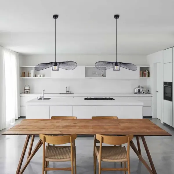 Лампата е голяма – диаметърът й е 70 см, а максималната дължина – 100 см . Възможността за регулиране на кабела ще ни позволи да регулираме височината на окачването според нашите предпочитания и архитектурните условия на помещението. Продуктът е оборудван с един светлинен източник E27 . Неекраниран, той ще накара излъчваните лъчи да осветяват идеално нашите пространства. Отворената структура на абажура дава възможност да се използва ефектна крушка, която ще завърши цялата композиция. Предлагаме ви да разгледате нашата оферта от декоративни крушки и да изберете подходящата за вас