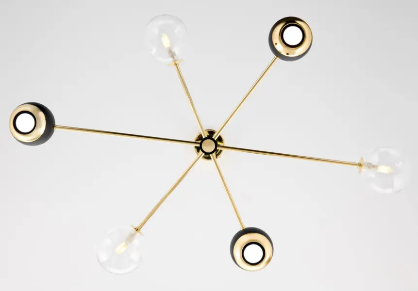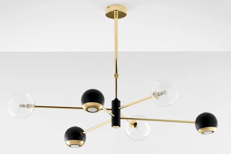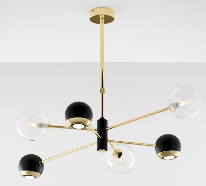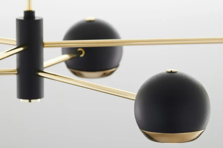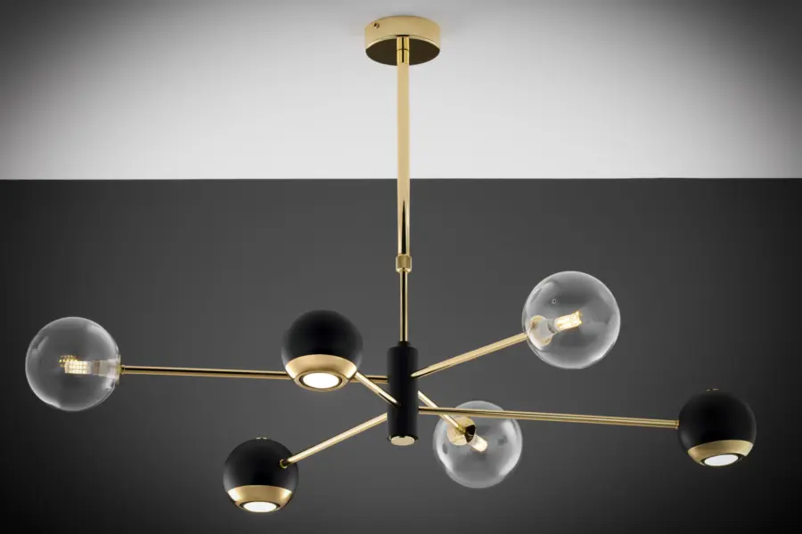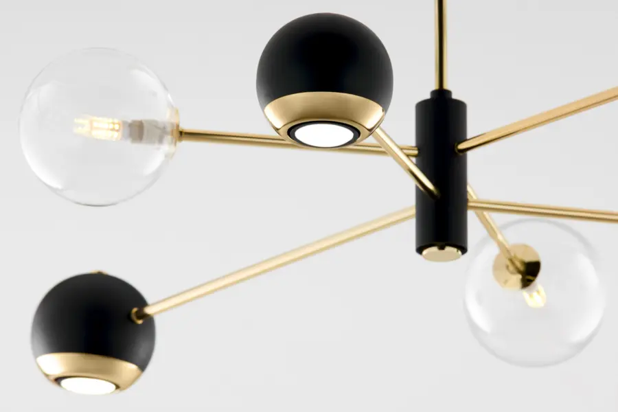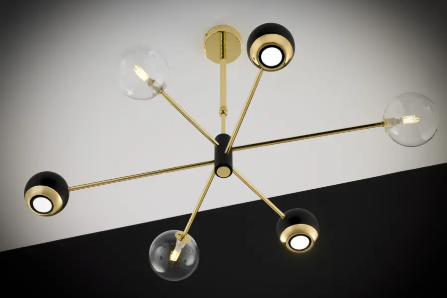Комбинацията със стъкло придава луксозен вид и допринася за равномерното разпръскване на светлината, създавайки приятна атмосфера във всяко помещение.