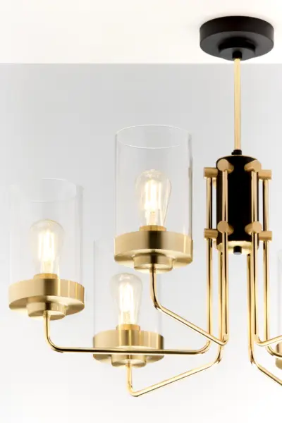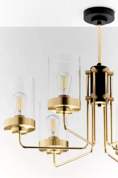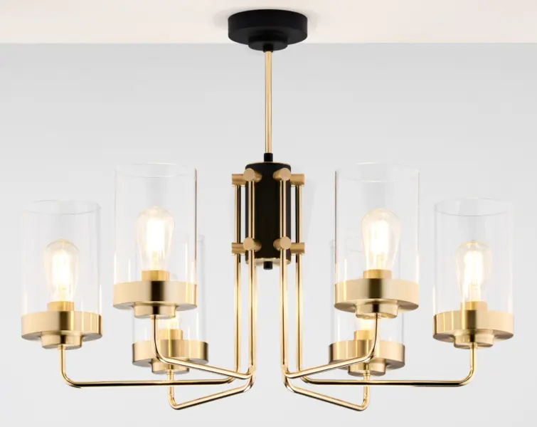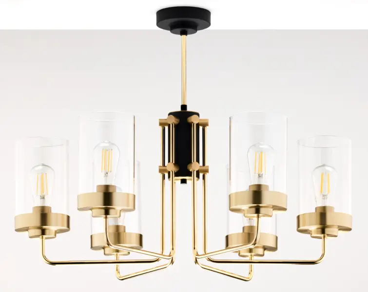 Този модел използва 6 броя крушки с цокъл E27 и максимална мощност до 15W всяка. Такъв тип източник на светлина е лесно достъпен и замяната е практична. Висящото осветление е подходящо за монтаж на таван и осигурява равномерно разпределение на светлината в помещението.