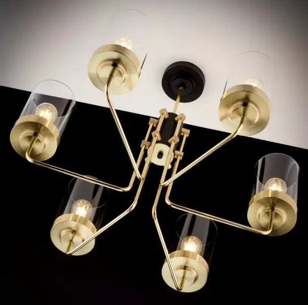 Елегантно висящо осветление RAMIREZ Jupiter JU2089 в златист цвят, изработено от метал и месинг, с 6xE27 източници на светлина.Крушката не е включена в комплекта