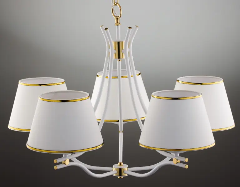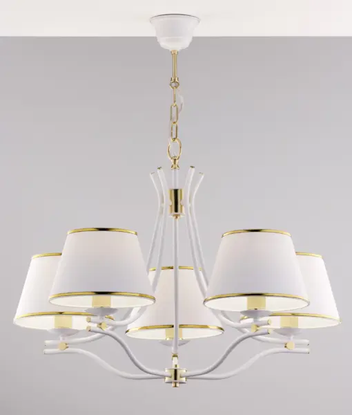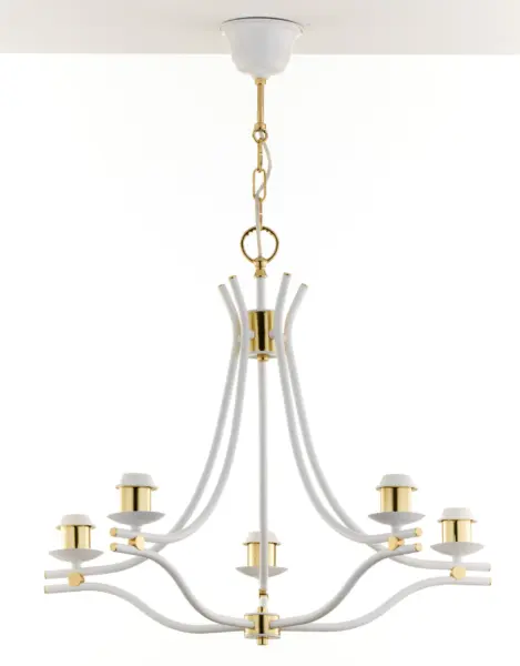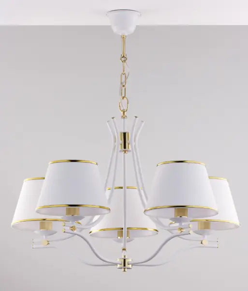 Висящо осветление SAMBA Jupiter JU2084 с метал и месинг, 5xE27 източника, бял цвят, стилен дизайн за уют и функционалност.Крушката не е включена в комплекта