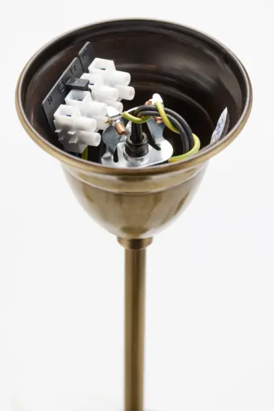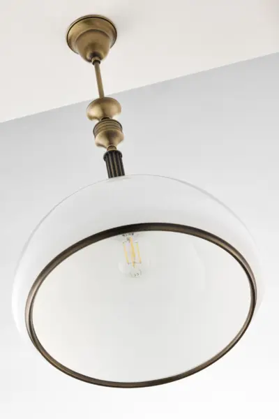 Комбинирайки метал и стъкло, осветлението се слива лесно с различни интериорни концепции, като едновременно подчертава пространството със своя месингов блясък.